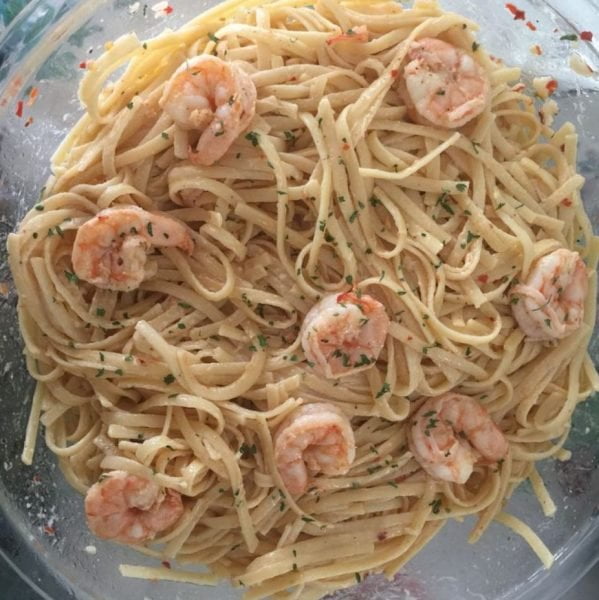 Toss the shrimp and sauce in with the linguini noodles and serve.