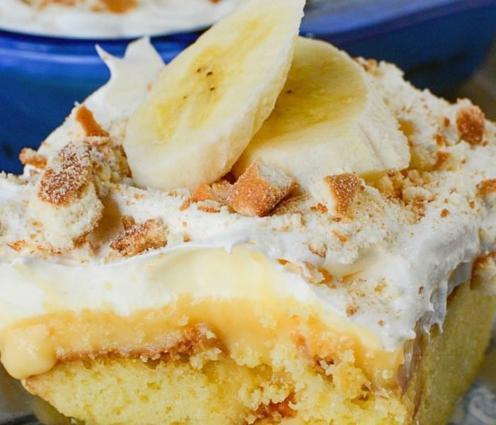 Spread the pudding mixture over top of the cake, then top with a layer of banana slices, reserving a few for the top