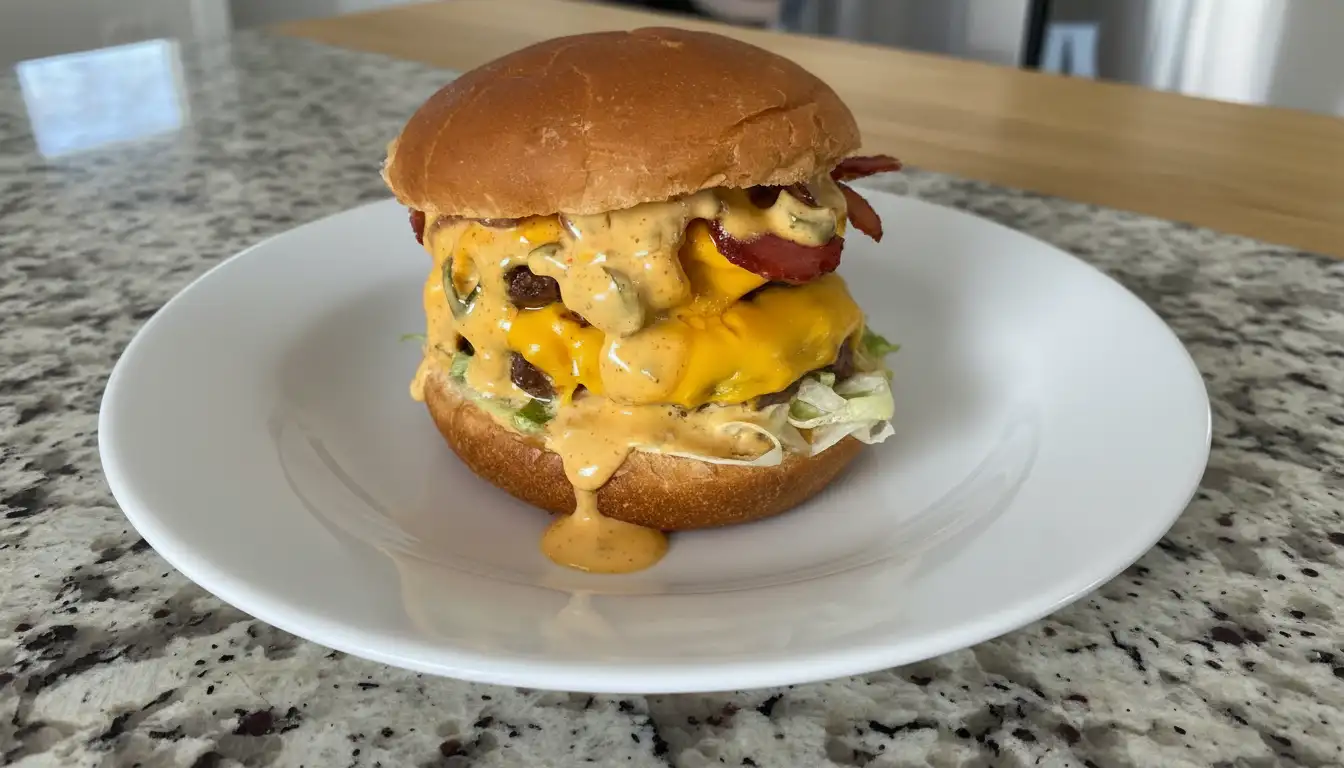 The process begins with the sauce, as it needs a few minutes for the flavors to marry into that familiar tangy dressing. While the sauce rests, you prepare your beef by rolling it into loose balls rather than pre-forming patties. This is crucial because the “smash” happens directly on the heat. Once your skillet is screaming hot, you place the beef down and use a heavy spatula or a burger press to flatten it until it is incredibly thin. You will hear a loud sizzle as the moisture evaporates and the crust begins to form. After a quick seasoning of salt and pepper, you flip the patties to reveal a beautiful mahogany sear. Immediately top them with cheese so it starts to weep over the edges. While the meat finishes, you toast your buns until they are golden and warm. Assembly is a tiered affair: sauce on the bottom, followed by onions, lettuce, cheese, a patty, the middle bun layer, and then repeating the process. The result is a towering masterpiece that smells like a dream.