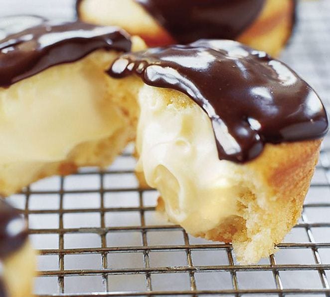 Heat cream in sauce pan until it comes to a boil. Remove from heat, pour over chocolate in a mixing bowl. Stir to mix together. Let cool slightly.
