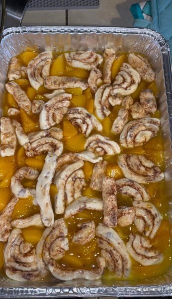 Cinnamon Roll Peach Cobbler
