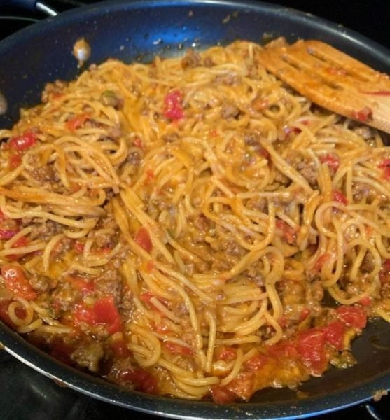 Reduce the heat to medium-low, cover and simmer for 12-15 minutes, or until the spaghetti is cooked to your liking.